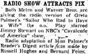 This small article from the December 12, 1945, edition of Variety gets the title wrong, but does add the names of the writers of the radio adaptation – Russell Hughes and Bernard Feins.