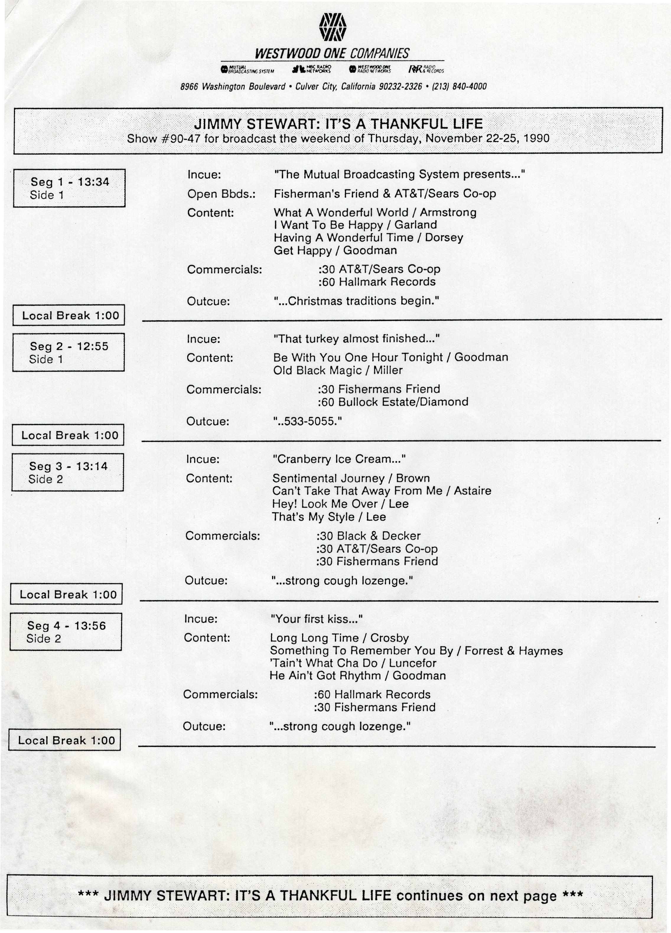This special two hour program syndicated by the Mutual Network and Westwood One, was covered in detail in Jimmy Stewart on the Air, but no photos or audio could be included. We’ll add them here.