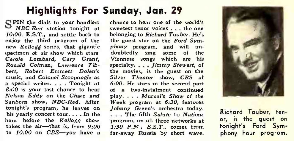 We recently found this clipping in the Radio Mirror Vol. 11 No. 5, March, 1939. It mentions Stewart’s appearance on this program about halfway down the second column.