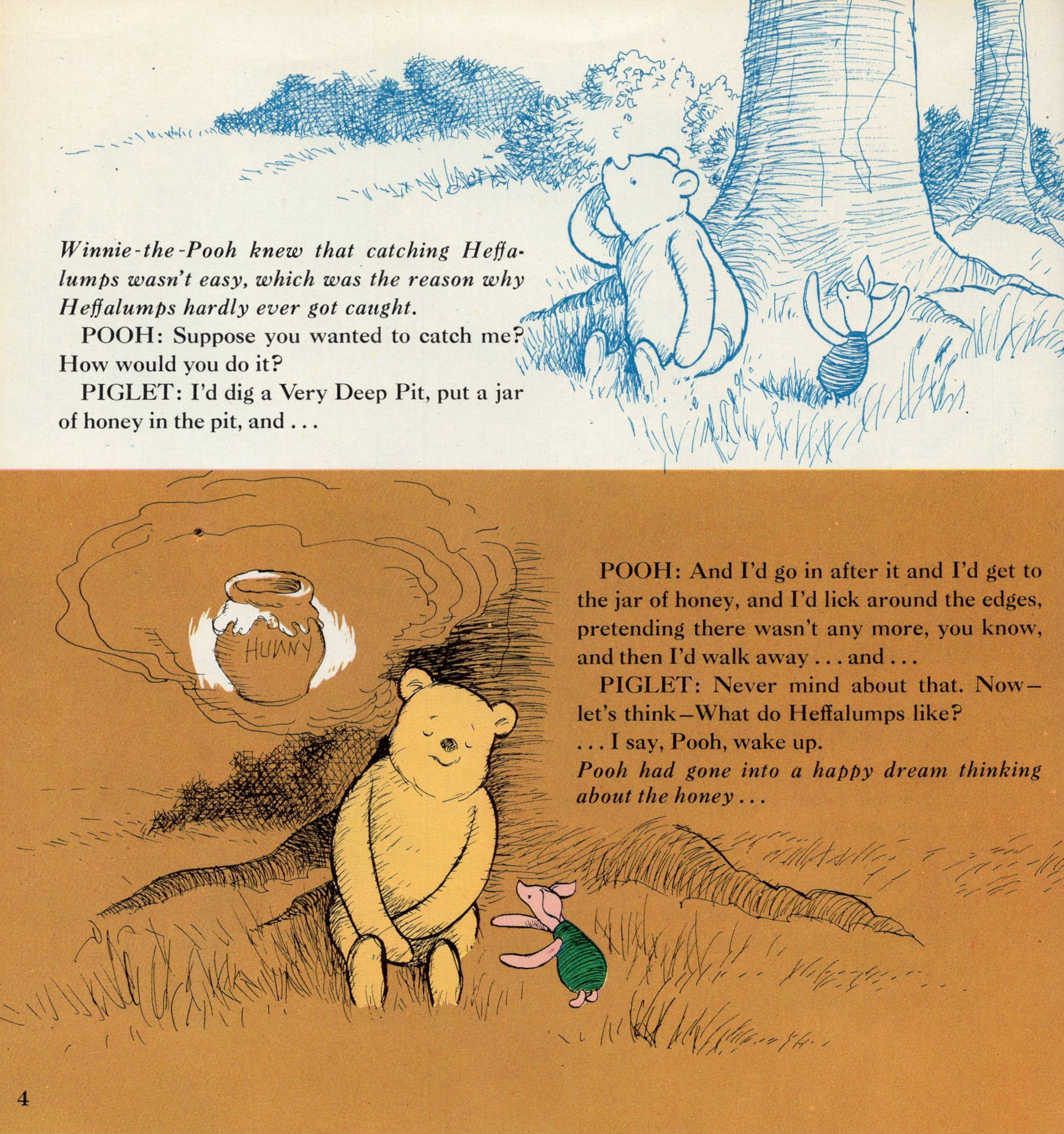 The last few lines at the bottom of this page are upside down because they mark the end of the other story, Winnie the Pooh and Tigger which, of course, is upside down.